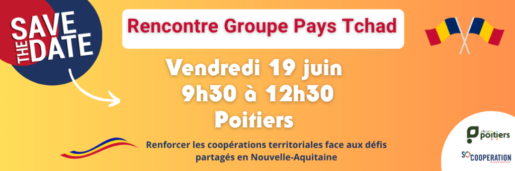 Vous êtes en Nouvelle-Aquitaine, vous portez des projets au Tchad et vous souhaitez échanger avec d’autres acteurs ? SO Coopération et la Ville de Poitiers vous invitent à une rencontre d’informations et d’échanges sur les coopérations territoriales.